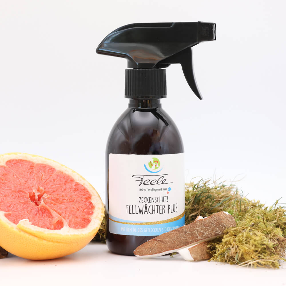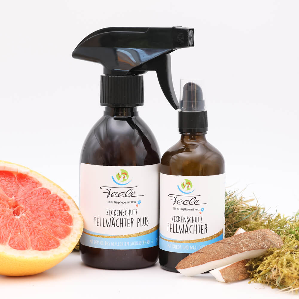 The innovation – self-acting long-term protection against ticks for spraying on all textiles, lying and sleeping areas of dogs and cats! Especially in times of high tick loads – THE “recharging station” to support the Fur Guard. Millions of natural bio-deposits provide your dog’s and cat’s coat with basic protection against ticks and other pests, which should be intensified in the summer months (March to October) with the Feele “Coat Guard”.